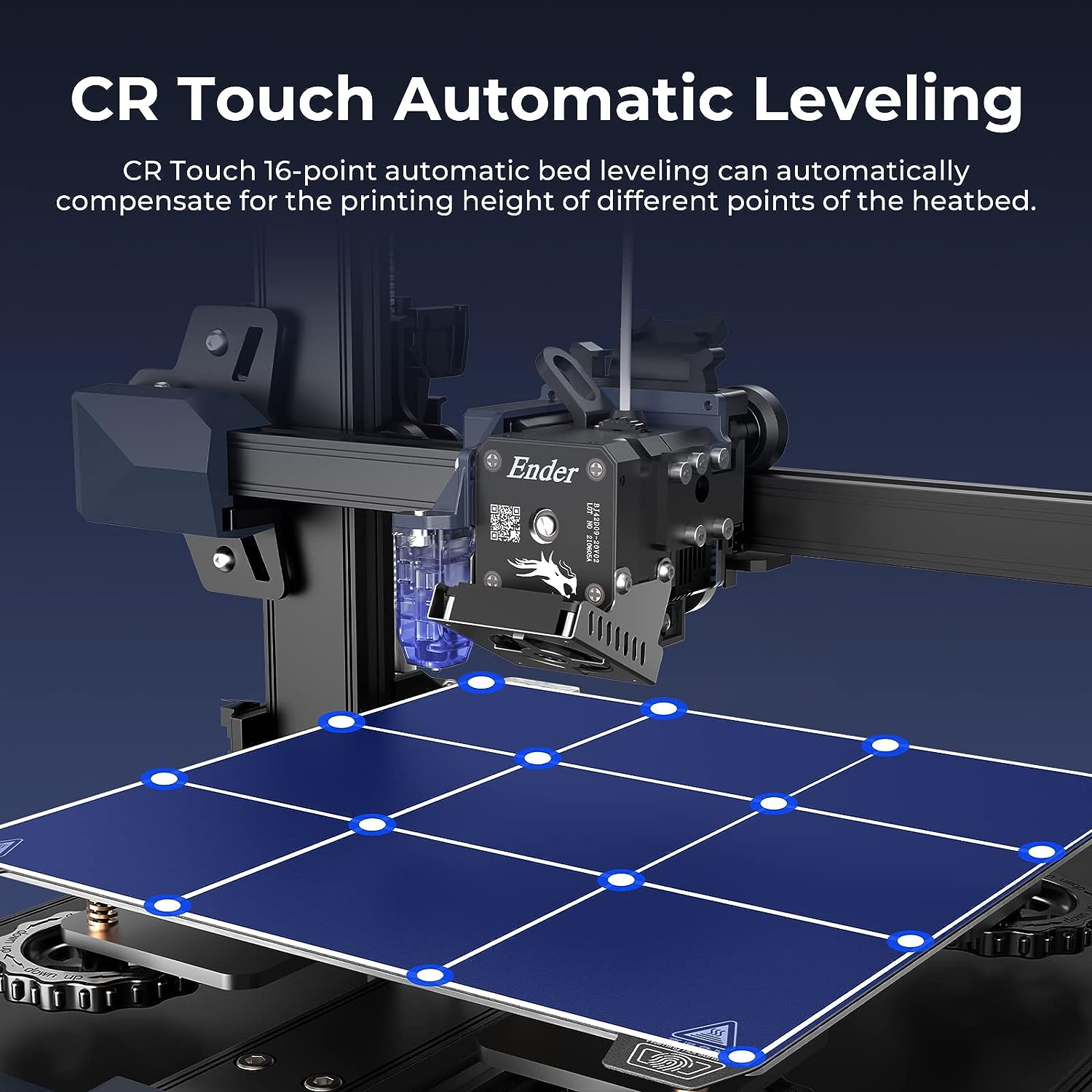 This 3D printer can be assembled in just three simple steps, making it perfect for beginners. It also features CR Touch auto leveling and a strain sensor for auto Z offset, eliminating the need for manual calibration. The user-friendly interface and motion graphics display the leveling process and other parameters, providing a seamless printing experience.