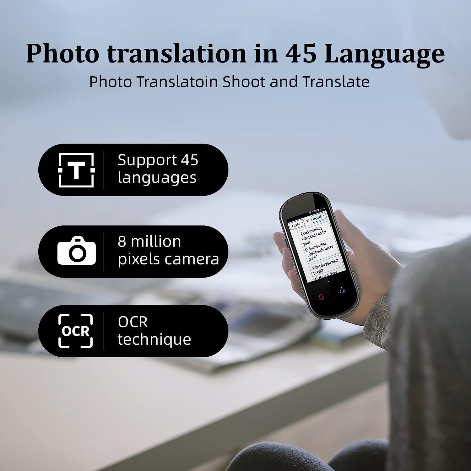 - Voice and Camera Translation: The device’s advanced technology can translate both voice and images, allowing you to understand and be understood in various situations. Simply speak or point the camera at the text, and the translation will appear on the 3-inch touch screen.