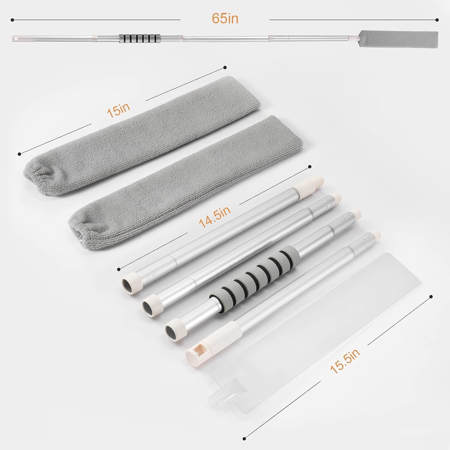 This dust cleaner is designed to easily clean corners, gaps, sofa bottoms, and other narrow spaces that are often ignored during regular cleaning routines. With its retractable feature and extension pole that can be adjusted from 29 to 65 inches, you can reach previously inaccessible areas without having to move heavy furniture and risk scratches. The brush is flexible and bendable, thanks to its silicone panel, allowing it to easily reach into gaps and corners that are difficult to clean with normal dusters.